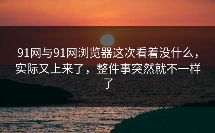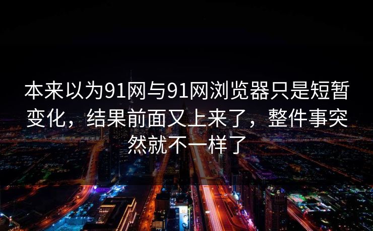 91网与91网浏览器这次被不少人关注,整件事突然就不一样了,最让人在意的是后半段