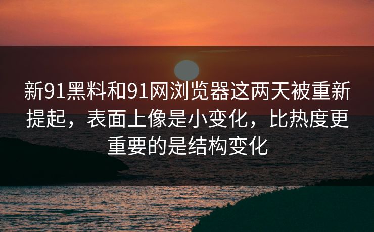 新91黑料和91网浏览器这两天被重新提起,表面上像是小变化,比热度更重要的是结构变化