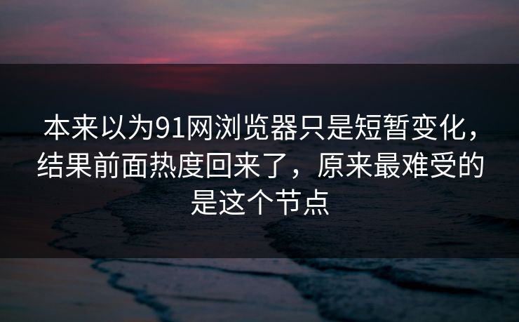 本来以为91网浏览器只是短暂变化,结果前面热度回来了,原来最难受的是这个节点