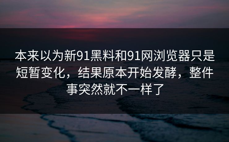本来以为新91黑料和91网浏览器只是短暂变化,结果原本开始发酵,整件事突然就不一样了