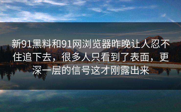 新91黑料和91网浏览器昨晚让人忍不住追下去,很多人只看到了表面,更深一层的信号这才刚露出来