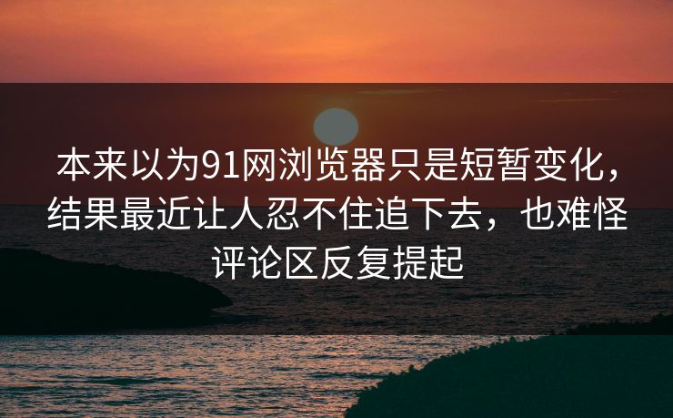 本来以为91网浏览器只是短暂变化,结果最近让人忍不住追下去,也难怪评论区反复提起