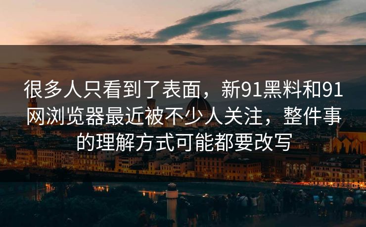 很多人只看到了表面,新91黑料和91网浏览器最近被不少人关注,整件事的理解方式可能都要改写