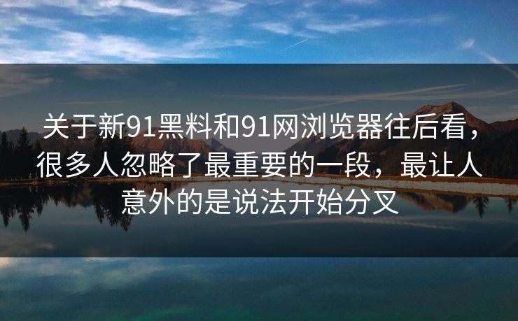 关于新91黑料和91网浏览器往后看,很多人忽略了最重要的一段,最让人意外的是说法开始分叉